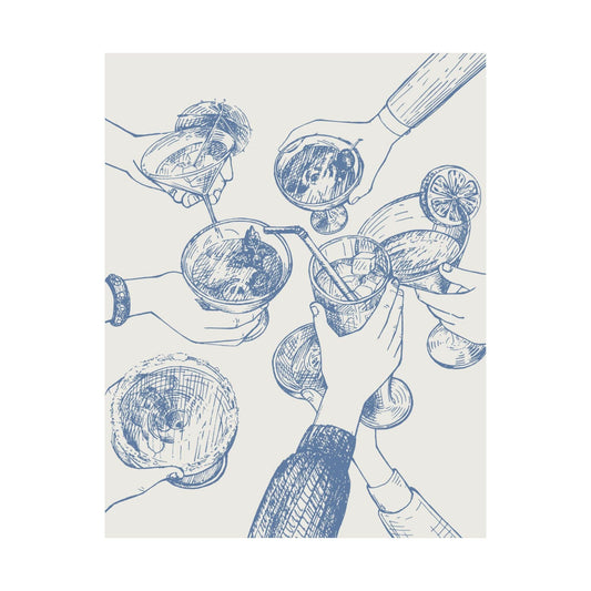 Hand Drawn Cheers Cocktail Blue Poster