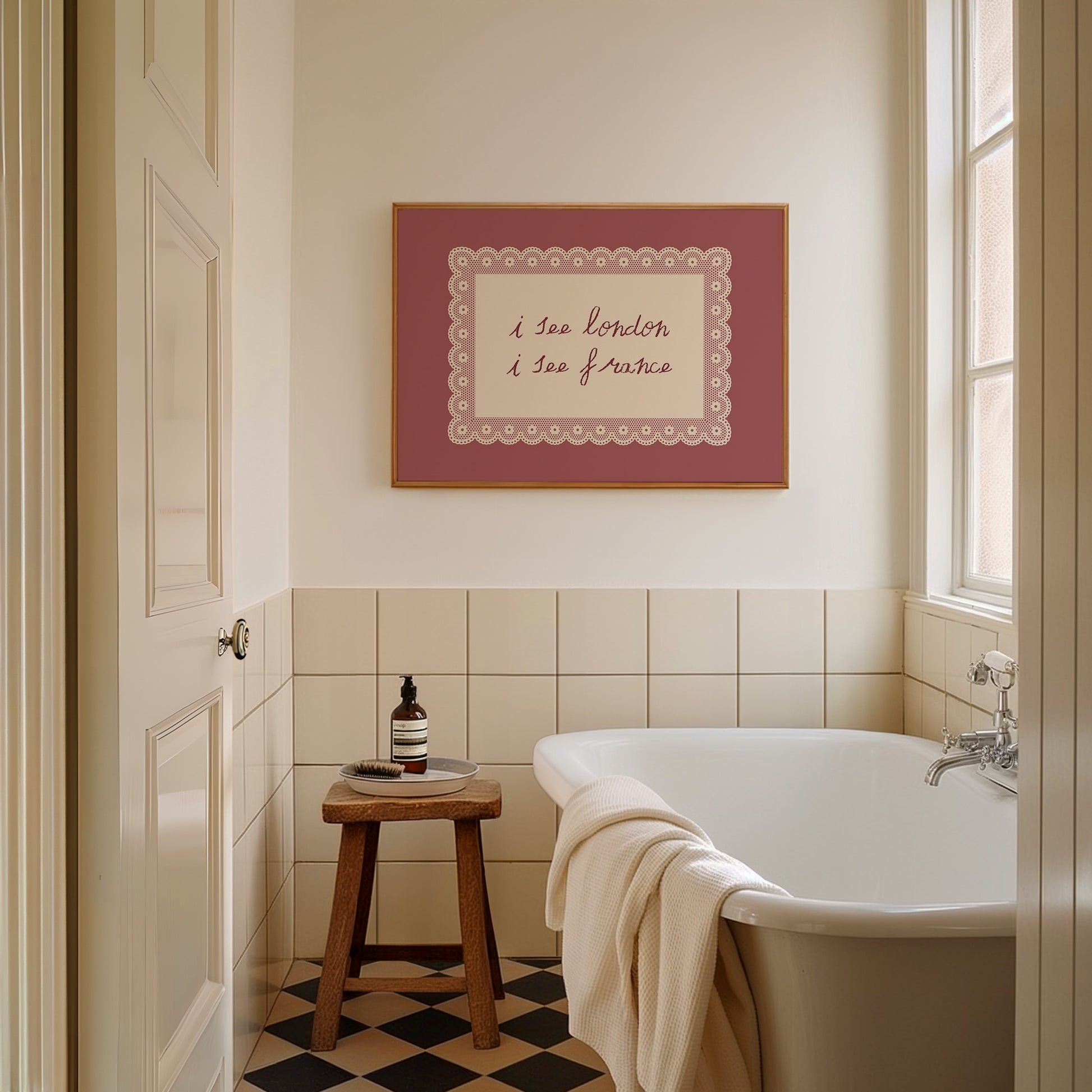 A sweet, nostalgic quote framed in delicate lace against a warm rose background. Soft and romantic with a timeless feel. Great for bedrooms, living rooms, entryways, or charming cottage-inspired interiors.