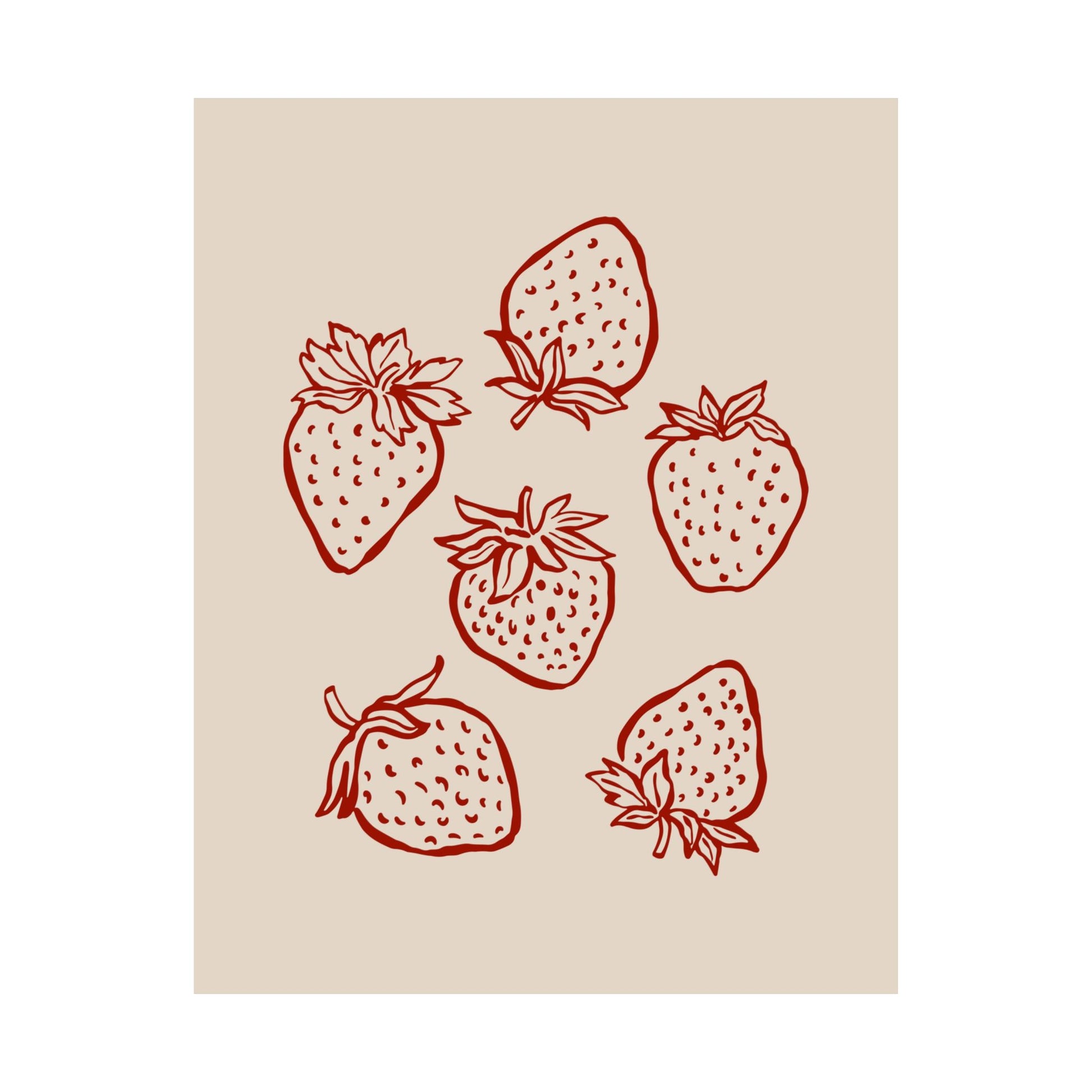 A celebration of summer's favorite fruit — this hand-drawn strawberry print adds a juicy pop of charm to any space. With its warm tones and organic shapes, it’s the perfect blend of playful and nostalgic. Hang it in the kitchen, dining area, or gallery walls.
