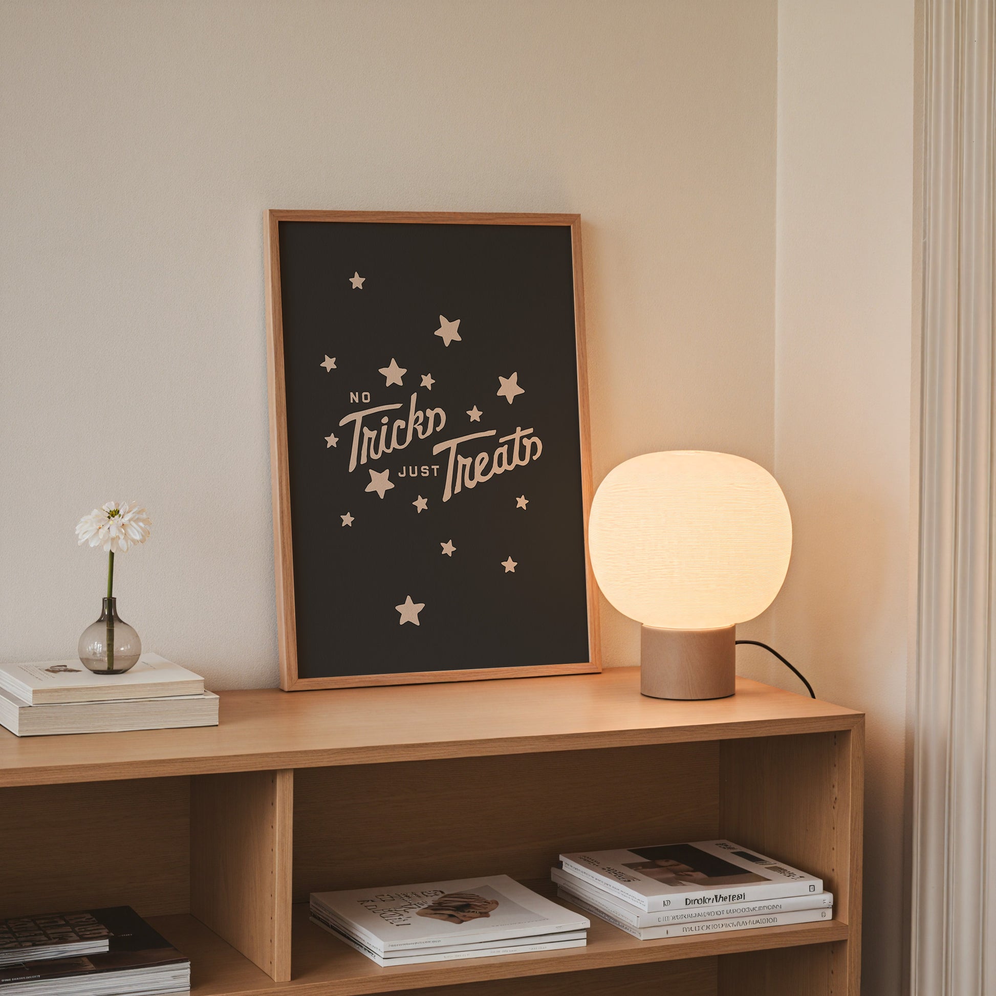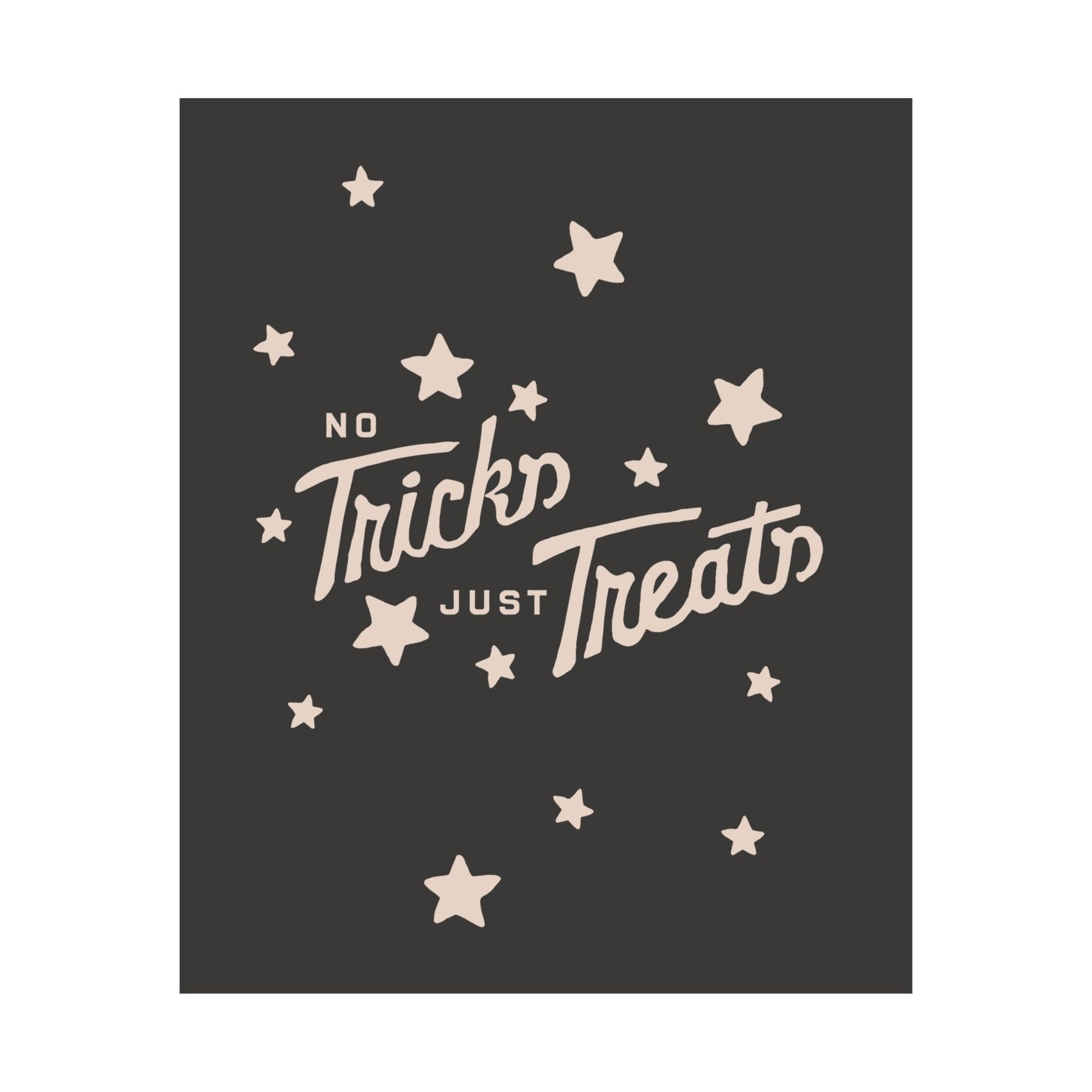 Our “No Tricks Just Treats” poster brings a playful wink to your Halloween decorating. With soft hand lettering and a scattering of stars, this artwork keeps things sweet (and a little magical). It’s the perfect finishing touch for your entryway, kitchen, or wherever the candy bowl lives.