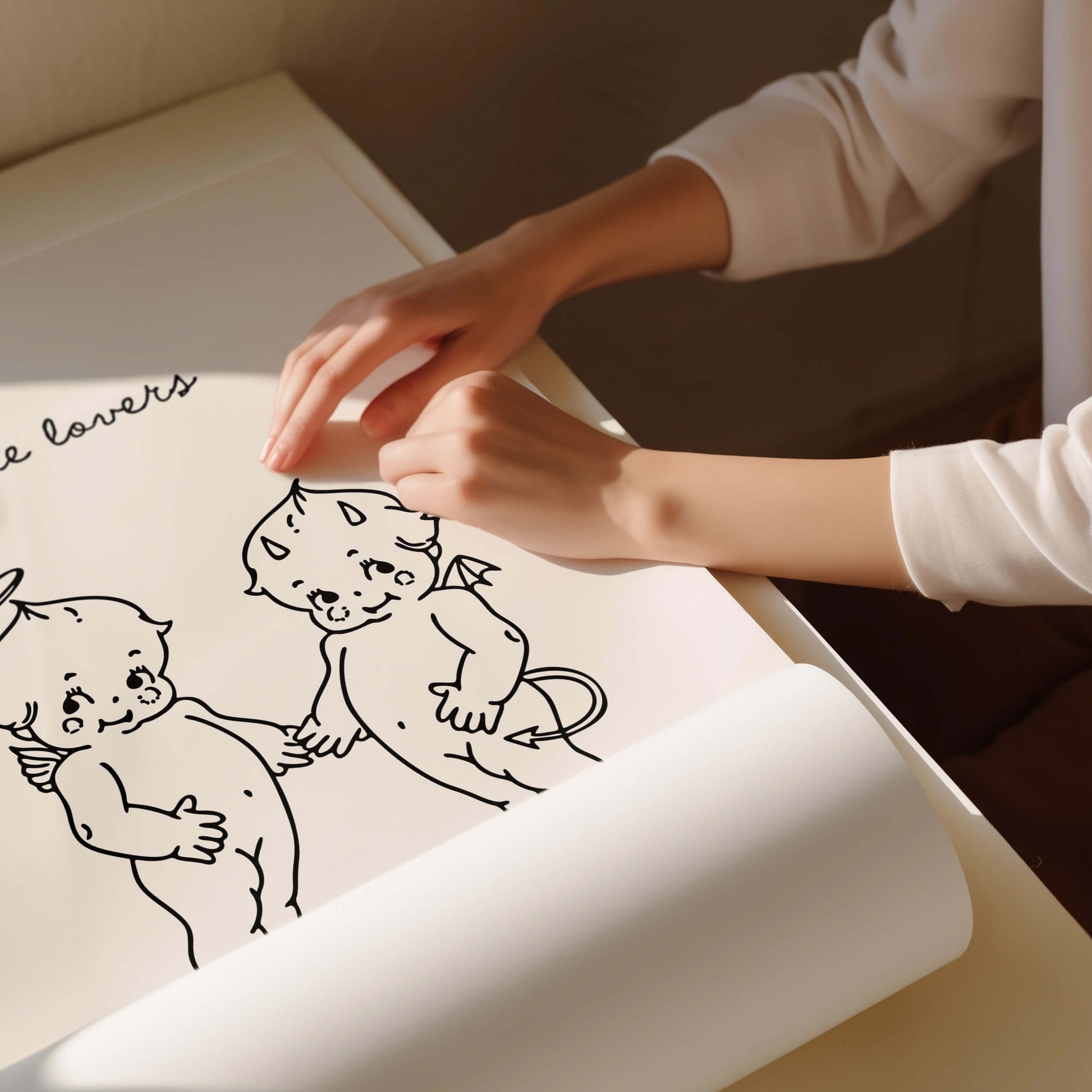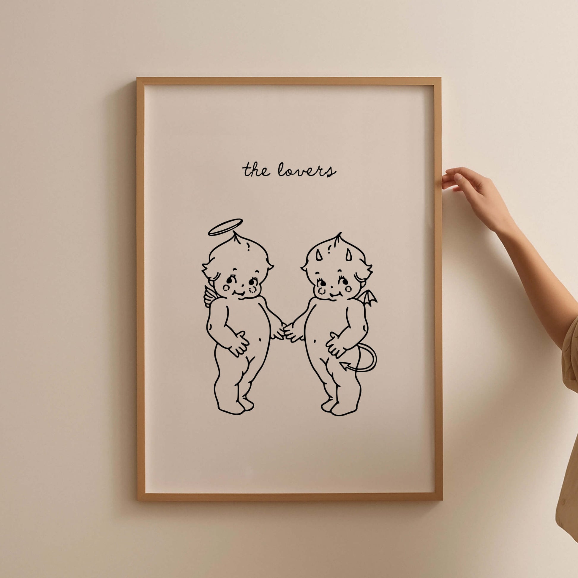 Bring a touch of vintage nostalgia and playful character to your space with “The Lovers” poster. Designed for anyone who loves quirky art, retro collectibles, or a hint of humor on their walls. Perfect for gallery walls, bedrooms and dorm rooms.